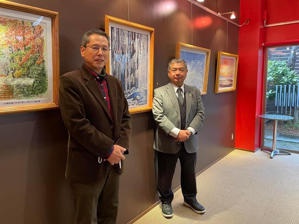 自衛隊OBの梅崎眞吉さんが開く水彩画展に行って来ました。60を過ぎて大病を患い、見よう見まねで描き始めたという絵が20点近く展示されています。どれも自分の足で回ったという熊本の風景ばかりです。あえて余白を残し、優しい色使いの作風は、見る人に癒しを与え梅崎さんの人柄が伝わります。