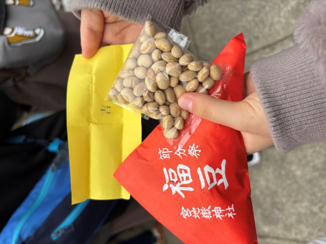 失意の内に帰ろうとすると「福引つき福豆を500円で販売中」のアナウンスがあり、結局、福豆2個購入してくじを引き、ウマイ棒をいただいて帰りました。