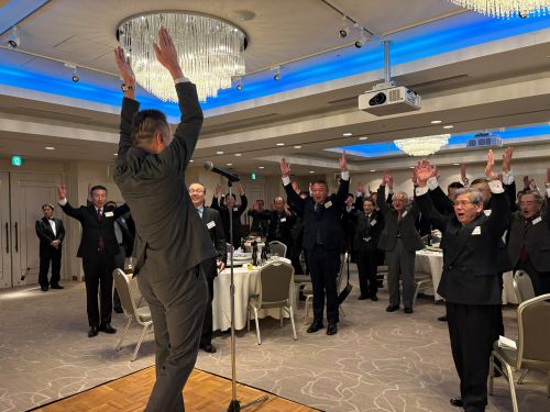 肩を組んで学生歌、逍遥歌を歌い、締めは万歳三唱・・全てが型通りですが、約50年の期別の枠を越えて、学生に戻ったような一体感を楽しんでいました。