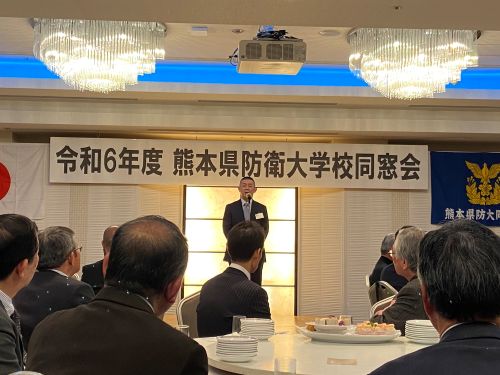 熊本県防衛大学校同窓会を盛会のうちに終了しました。 総会後に徳永勝彦第8師団長から「第8師団を取り巻く現況」と題して講話をいただき、最後は現職自衛官を交えての懇親会です。