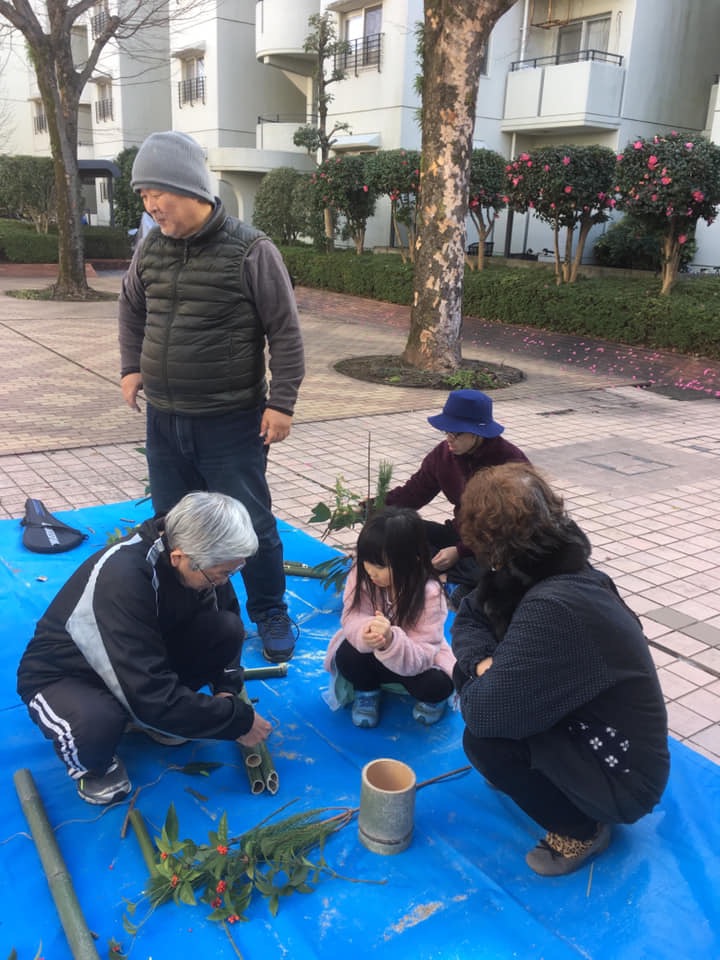 以前住んでいたマンションの自治会長さんの肝いりで「手作り門松講習会」がありました。ミニサイズですが、全ての材料が自然界の本物です。まず最初に、会長さんから門松の由来や飾り付ける植物の意味についての講話があり、竹以外の材料はマンションの敷地内で採取。ナンテン、ユズリハ、サカキ、センリョウ、マンリョウetc・・驚いたことにほとんど全ての材料を揃えることができました。作り方はお手本を見ながら自由自在。これこそ手作りの醍醐味だろうと思います。個性溢れる門松とともに、来年は一味違ったお正月を迎えられそうです。