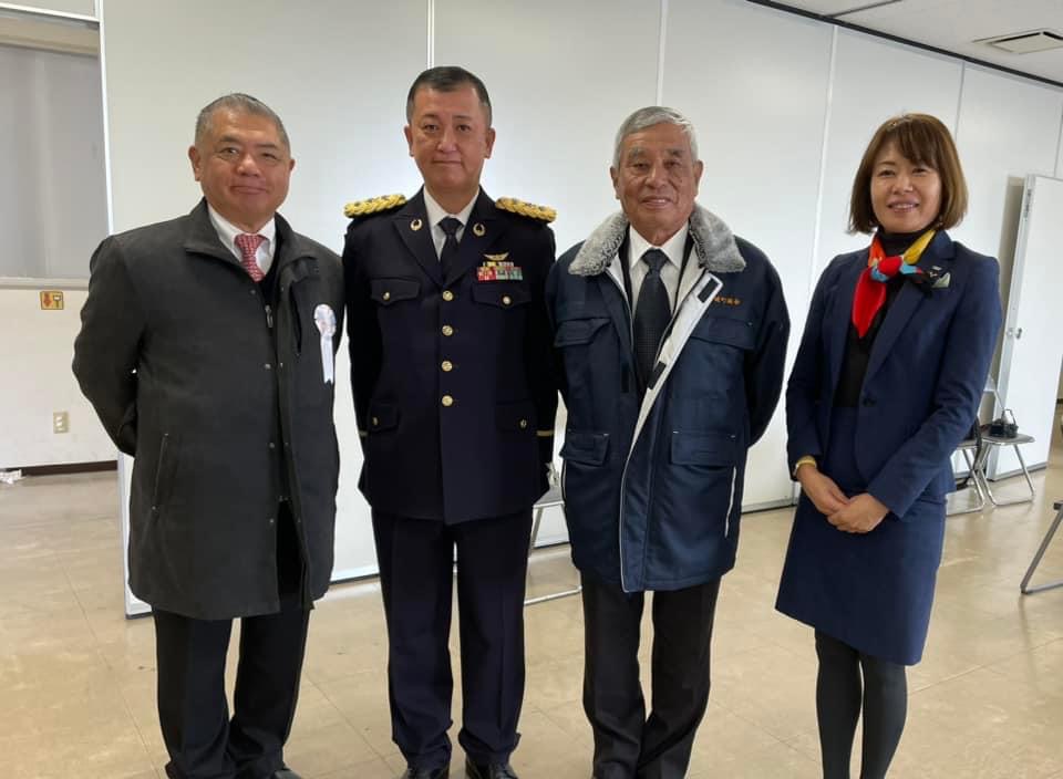 控室にて中尾国保方面航空隊長、後援会会長、宮﨑金次益城町議、会員の時松智弘大津町議長らと画像撮りました。