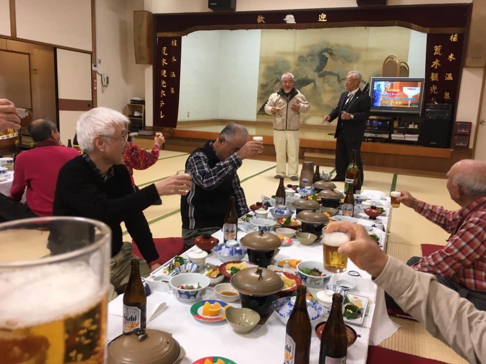 健軍1町内役員の意見交換会は恒例の植木温泉日帰りツアー。到着と同時にグラウンドゴルフ大会が始まり、その後は温泉〜ゴルフ表彰式〜昼食会という流れ。天気にも恵まれ、軽く汗ばんでからの入浴は最高でした。3時間にわたりカラオケの歌も途切れることなく、踊りも飛び出して大変盛り上がりました。今年の我が町内会は益々元気です。