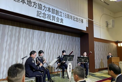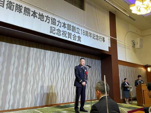 自衛隊熊本地方協力本部の記念行事に参加しました。一般的に「部隊」の記念行事は式典、会食に区分され、時には模擬戦などが行われ半日を要しますが、地本は「機関」なので会食主体です。