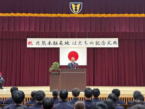 北熊本駐屯地と健軍駐屯地で各々「はたちの祝賀行事」が行われました。幸い1時間ほどの時間差がありましたので、とんぼ帰りで両方に参加し、熊本県自衛隊家族会会長として祝辞を述べました。
